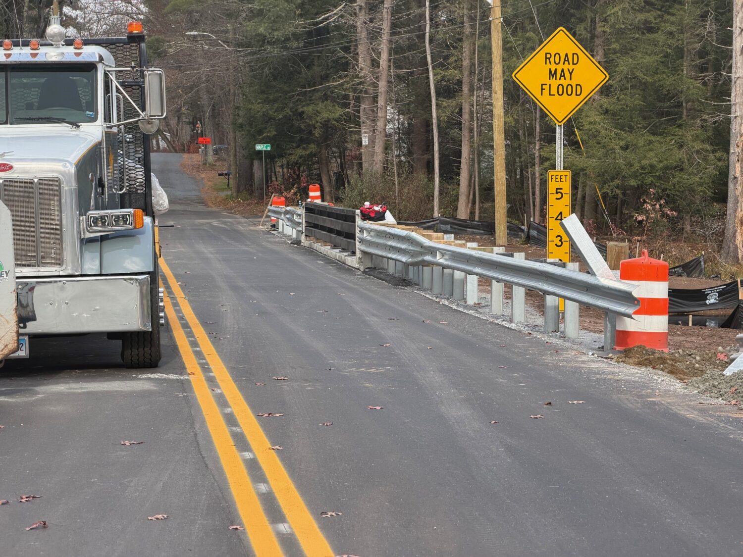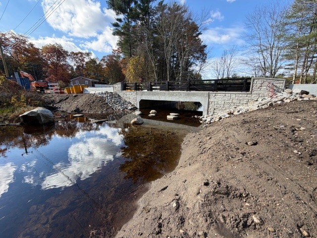 Spazzarini Construction Co., LLC was awarded the contract for project no. 0134-0150 – Reconstruction of Whispering Pines Bridge No. 06198 over Still Brook located in Stafford CT. This project consisted the demolition of the existing culvert and installation of a 24′ x 7’6″ Box Culvert and Cast In Place Footings, wingwalls, and approach slabs. This project began in the Spring of 2025 and Substantially completed in the Fall of 2025, with landscaping being completed in the spring of 2026.